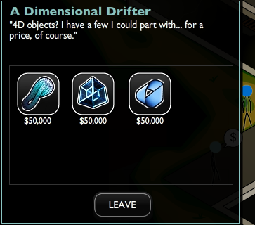 The three objects are the 4D Hypercube the Klein Bottle and the Mobius Strip. All three objects are essential to the story line in that all three objects need to be given to Professor Ansel who. In Stick RPG 2 In the game the Drifter sells 4D objects to anyone willing to buy them around the afternoon-evening hours.